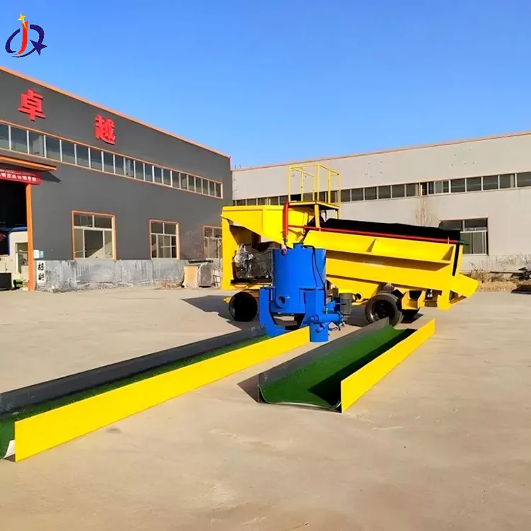 A Jinqi mobil arany centrifugális koncentrátorai vontatás alapú kialakításúak, és a felszerelést mobil aranybányászati ​​járművekbe vagy pótkocsi alvázba integrálják a gyors áthelyezés érdekében. Alkalmasak különféle terepen történő műveletekre, beleértve a folyómedreket, szárazföldeket és sivatagokat.